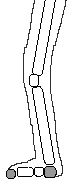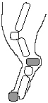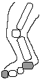 先ずは足の形です。哺乳動物の足の基本構造は皆人間と同じですが、その歩き方によって部分の役割がいろいろ変わっています。それに伴い足あとの形も変わりますので、この特徴を捉えることで足あとの主を判断するヒントが得られます。爪先と踵の位置に注意してごらんください。(絵が非常にヘタクソなのですがお許しください)