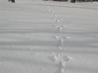 驚いて逃げるときのスピードは、ビックリするほど速いです。足あとの間隔は軽く2mを越えます。 |