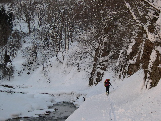 冬の林道は雪崩の危険が一杯です。