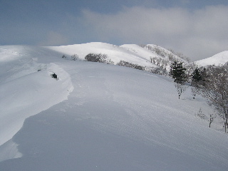 どうも一つ奥のピークから滑るのが気持ちよさそうですね。