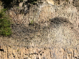 崖の岩を良く見ますと上下二段で様子が異なり、