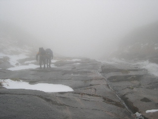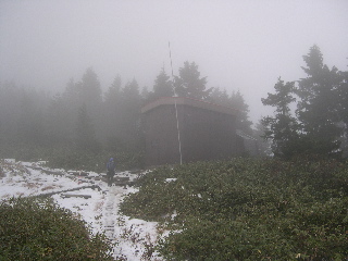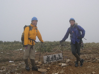 頂上はガスってて寒いので、記念撮影を済ませたら、