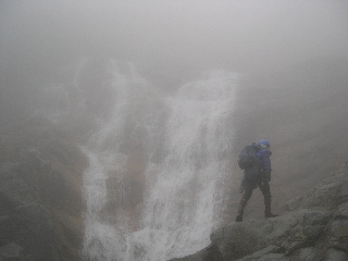 しばらく進むと、えげつないスダレ滝が正面に見え、