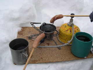 テントに戻ったら、とりあえず飲み物を沸かして、