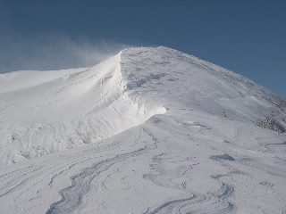 今年は雪がやや少なめで雪庇の張り出しも小さく、