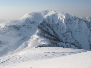 右手には日岸山の素晴らしい斜面が広がっています。