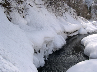 台地周辺の水流はこの時期すっかり雪の下ですので、