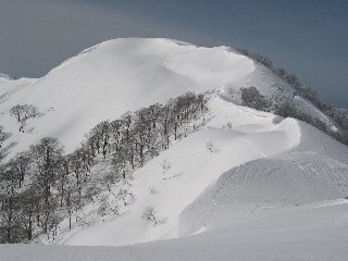 経ヶ岳は、頂上から西面にも素晴らしい斜面がありまして、