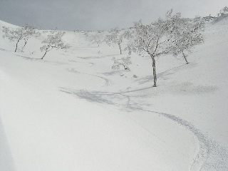 パウダーを楽しむだけならこういう所を滑るのが良さそうです。