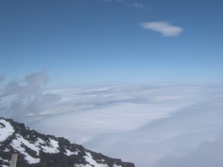 下界は天気が最悪ですが山頂は雲の上でして、