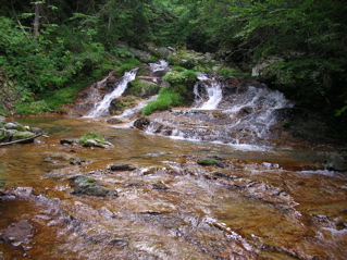 滝の直ぐ上は沢の出合になっていまして、