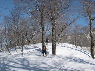 ゲレンデ最上部1360mh(9:10)→水後山1558mh(10:17〜10:55)→滑降→