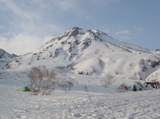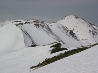 稜線上の雪は、ここから見ると雪切れ切れで危うい様子ですが、