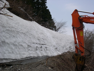 林道入口の雪壁(540mh 11:45)