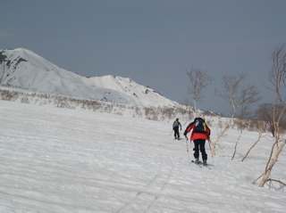 実際にはハイマツのスキマを踏みつつ、シールのまま登れます。