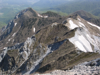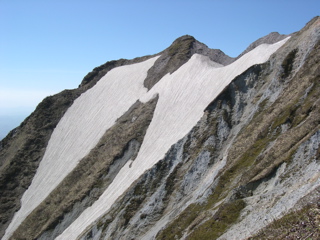 この周辺の稜線は大変痩せていましてザレザレ状態。