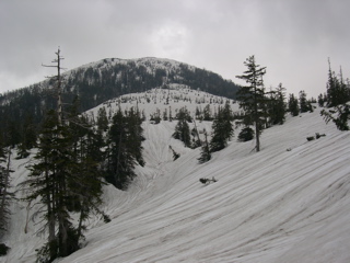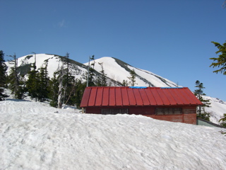 ここから尾根末端の避難小屋までもシールで行くことは可能ですが、