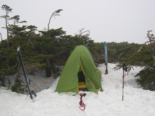 明日の好天を信じて、展望の良さそうな場所にテントを張ります。