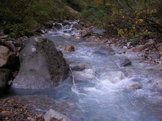 白水と言う名の通り、沢の水は何となく白っぽく、