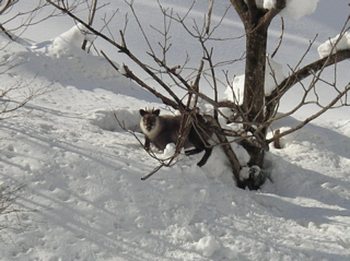 谷底にはシカの足あとや食事のあとが残されていまして、