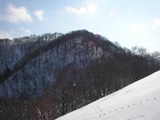 尾根末端神社380mh(5:00)→大ダワ1067mh(7:30)→土蔵岳東鞍部980mh(8:47)→滑降→