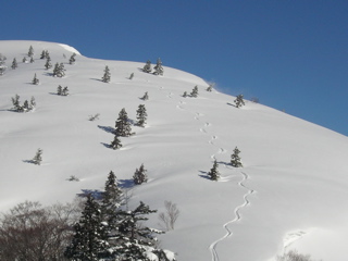 残念ながらシュプールはちょうど影になってしまって見えませんね。