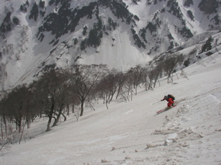デブリを避けつつ、きれいな雪面を拾って、