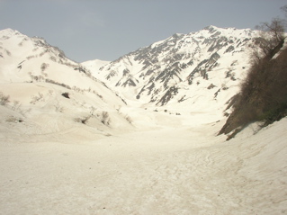 大雪渓の少し手前で、大きなデブリが谷を覆っていましたが、