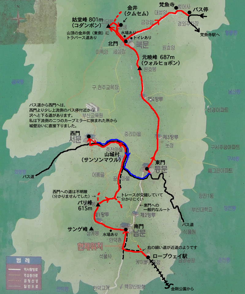 韓国 釜山 金井山城城門巡りのコース概略